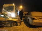 Среди застрявших авто - легковые, фуры, автобусы, и даже эвакуаторы, инкассаторы и "скорые". Также немало было разных столкновений авто (ДТП).