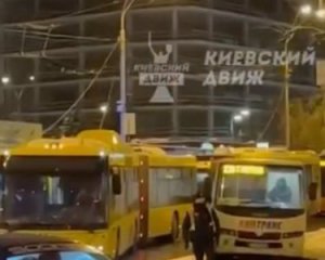 В Киеве автобусы, которые должны были стать альтернативой метро на синей ветке, скопились возле станции Лыбидская.