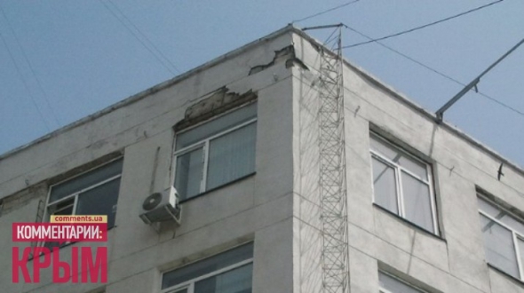 Около часа назад в Симферополе по ул. Киевская с фасада здания, где располагается Министерство курортов и туризма Крыма, обрушилась часть откоса, передает "Крым.Комментарии"