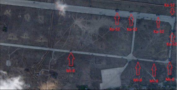 Так, в результате удара, по данным OSINT-аналитиков, уничтожены четыре вражеских вертолета Ми-8 и пять вертолетов Ка-52.