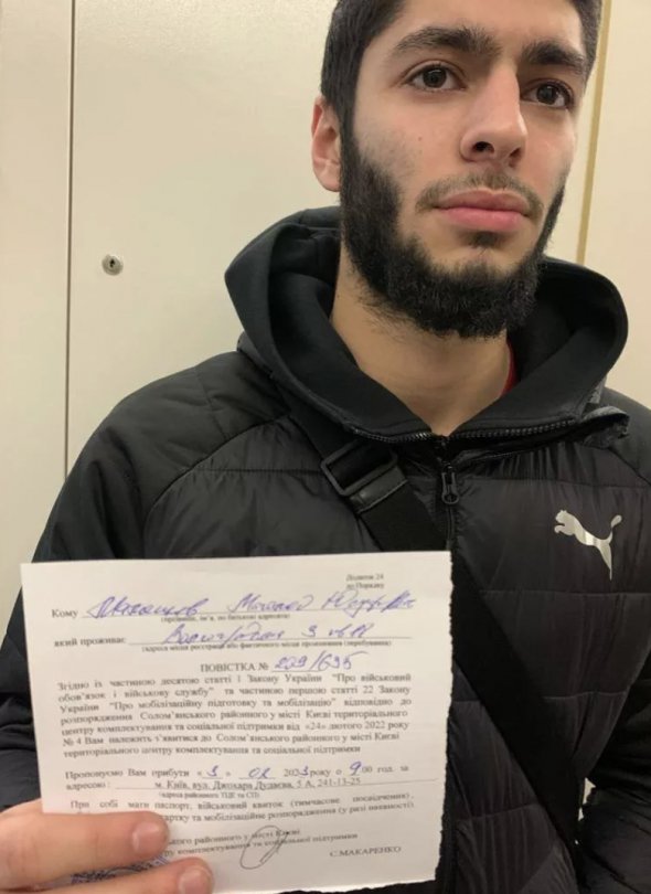 Одним из участников громкого дела является бывший форвард тернопольской "Нивы" Магомед Мемешев. Футболиста узнали после публикации фото "героев" с повестками в руках
