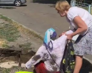 На кадрах видно, что яма с кипятком была на обочине. Рядом - припаркованные автомобили. Неравнодушные прохожие бросились спасать женщину из ловушки.