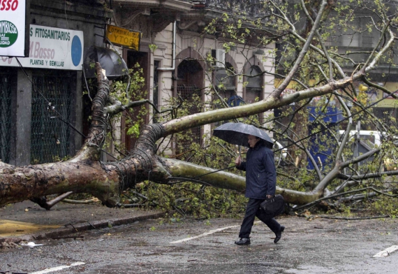 Пострадали также и города Уругвая. В Монтевидео ветер был такой силы, что валил людей на землю. По предварительным оценкам, скорость ветра достигла 180 километров в час.