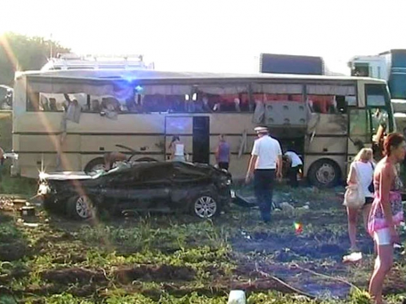 Как сообщили в пресс-службе министерства внутренних дел, ДТП произошло днем 16 августа на пути из Варны в сторону Бургаса на южном Черноморском побережье Болгарии. 39-летний водитель Audi, сын известного болгарского дипломата и его супруга скончались на месте происшествия. 11 туристов с легкими травмами были госпитализированы в больницу города Варна.