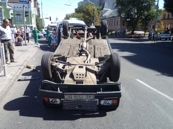 Около 10 утра практически в самом центре Днепропетровска произошло резонансное ДТП – на пересечении улиц Комсомольской и Серова "Мерседес" врезался в "Жигули" 2107. Свидетели случившегося утверждают, что водитель "семерки" поворачивал с Комсомольской вверх на Серова, когда в его автомобиль на скорости влетела иномарка. От удара "Жигули" перевернуло на крышу, пишет Сегодня.
