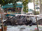 От взрыва загорелись стоявшие поблизости автомобили и муниципальный пассажирский автобус. Ущерб нанесен также расположенным поблизости зданиям двух больниц.