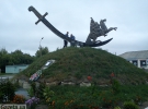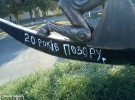 В селе Ирклиев Чернобаевского района Черкасской области сегодня утром неизвестные исписали памятник Казацкой сабли лозунгами "20 лет позора" и "С днем ??проституции".