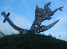 Это не первый раз вандалы обрисовали памятник Казацкой сабли. 9 мая утром на нем неизвестные написали белой краской "За Победу", "На Берлин" и закрепили на памятнике красный флаг. Злоумышленников правоохранители не нашли.