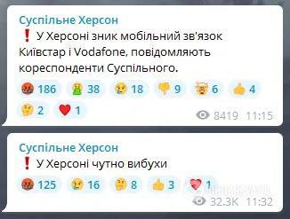 "Сначала говорили, что взрывы слышно за пределами города, а впоследствии подтвердили их уже и на территории Херсона. Частично пропала мобильная связь", - говорилось в сообщении канала "Суспільне Херсон".
