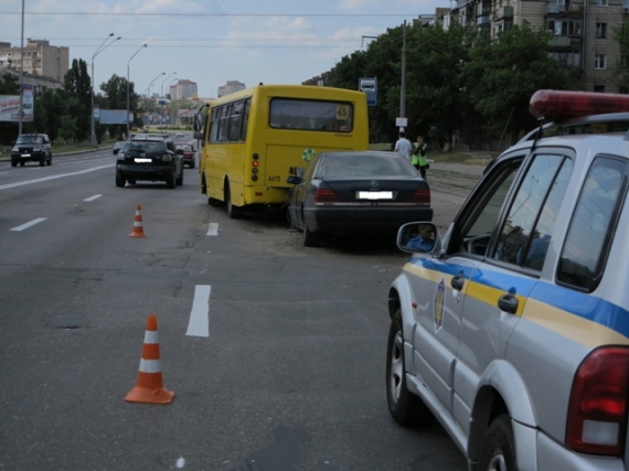 "В воскресенье, 23 июня, около 15:30 в Днепровском районе, на Харьковском шоссе водитель "Мерседес-Бенц 500" на полном ходу врезался в маршрутный "Богдан", в салоне которого находились пассажиры", - рассказали гаишники.
