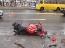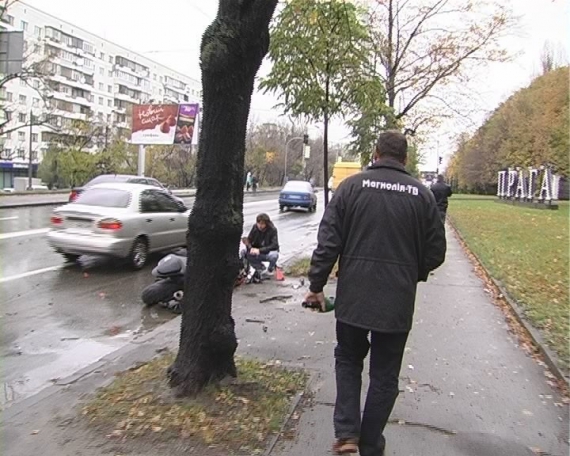 Водитель автомобиля "Хюндай Гетс" остановился на красный сигнал светофора, когда заметил, что в его корму уже на боку летит человек на мотоцикле.