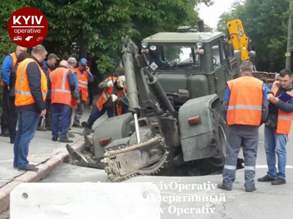 "На Предславинской трактор, который должен был заниматься ремонтом дороги, провалился под землю", - сказано в сообщении.