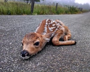 Водитель BMW не успел избежать столкновения и сбил животное. От полученных травм олень погиб на месте. Водитель не пострадал.