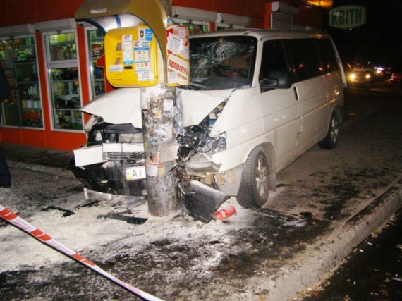 По предварительным данным автомобиль двигался со стороны стационарного поста ГАИ в направлении Одесского моста. Неустановленный водитель, управляя автомобилем "Volkswagen Transporter", по неизвестным причинам выехал на тротуар, где совершил наезд на электроопору. От удара машину отбросило на киоск "Цветы".