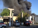 По словам свидетеля масштабного пожара, на месте сейчас работают около 10 пожарных машин, но подойти ближе к месту возгорания невозможно из-за больших столбов дыма и мощного огня.
