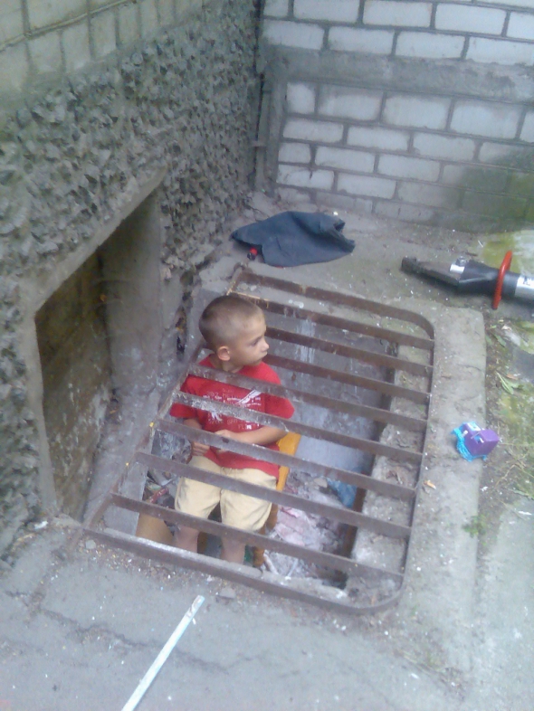"Мальчик живет в пятиэтажке, в обед пошел гулять во двор. Под стеной дома есть яма для вентиляции подвала, местные накрыли ее решеткой. Мальчик залез под нее через дыру в стене, назад хотел выбраться через промежуток между решеткой, но голова пролезла, а тело нет, - рассказала Светлана Рыбалко из Полтавского областного управления чрезвычайных ситуаций. - Начал сильно кричать и плакать. Мать в это время была дома с годовалым ребенком, криков не услышала. Его заметили соседи. Сразу же хотели разогнуть прутья, но они оказались толстыми, тогда вызвали спасателей".