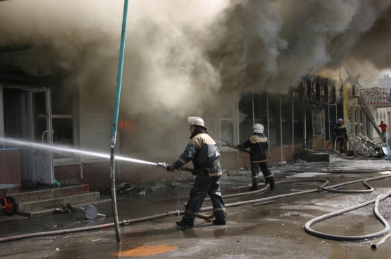 Дым увидели в продавцы одного из магазинов. Они вызвали пожарных. Через некоторое время пламя перекинулось на самые магазины.