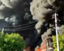 На кадрах виден огонь и огромное облако поднимающегося над складом черного густого дыма.