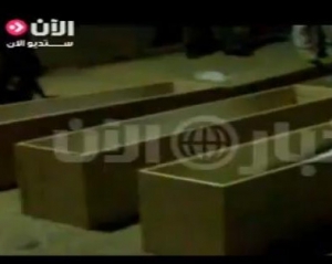 Арабское телевидение распространило кадры, снятые во время похорон экс-лидера Ливии Муаммара Каддафи, его сына Мутассима и бывшего министра обороны Абу-Бакра.
