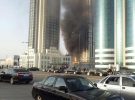 Огонь вспыхнул на верхних этажах самого высокого здания комплекса.