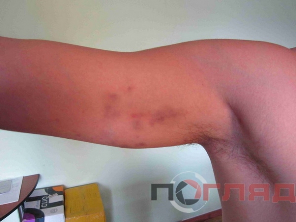 Как рассказывает пострадавший, в машине его били по голове и плечам. Впоследствии привезли в городское отделение. Там завели в туалет и снова начали бить .