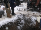Ремонтные работы велись с ночи. Место прорыва раскопали, яма достигла 2,5-3 м. Поврежденную трубу домтали экскаватором.