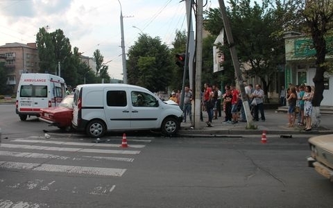 10 июня в 20.20 на перекрестке Первомайской и Театральной улиц в Виннице столкнулись "Рено Кенго" и "ВАЗ-2105". Остановились они на тротуаре.