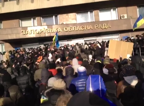 В Запорожье активисты Евромайдана собираются под облгосадминистрацией, сейчас на площади под зданием - около 6 тыс. активистов