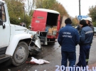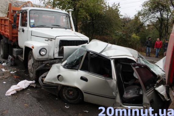 27 октября в Виннице на ул. Данила Галицкого грузовой автомобиль "ГАЗ" врезался в Daewoo Nexia, протащил несколько метров и ударил в микроавтобус Mercedes, из которого выгружали товар у магазина. В результате удара легковушку раздавило. Двух пострадавших забрала "скорая", сообщает "20 минут".