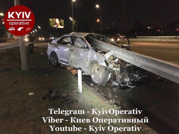 В ночь на 2 августа в Киеве водитель Volkswagen врезался в отбойник, который насквозь пробил автомобиль.