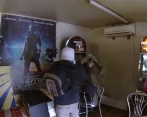 Антикоррупционная инициатива "Святошинские робингуды" разгромила игровой салон на улице Соломенской в Киеве.