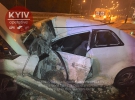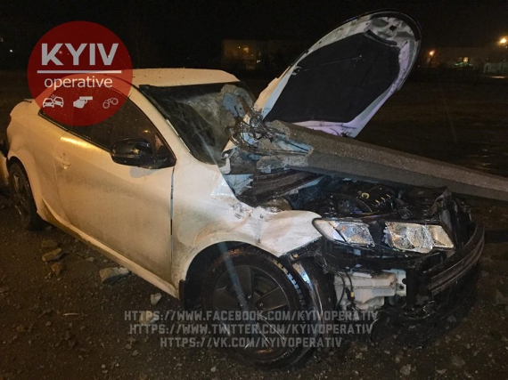 В Киеве произошло серьезное ночное ДТП. Водитель не справился с управлением и снес столб.