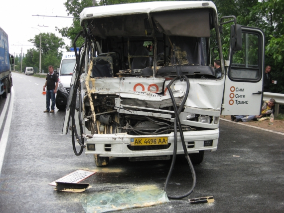 4 июня, в 13 часов 20 минут, на 677 км автодороги Харьков - Симферополь - Алушта - Ялта произошло столкновение автобуса и грузовика.