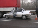Сегодня в 8.40 на автодороге Киев-Чоп возле села Бабин Гощанского района автомобиль "ВАЗ 21010" врезался в попутный грузовик "DAF" с прицепом. Водитель легковушки погиб на месте происшествия.