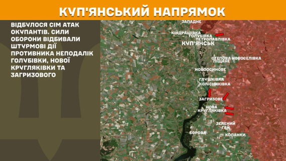На Купянском направлении произошло семь атак оккупантов. Силы обороны отражали штурмовые действия противника неподалеку Голубовки, Новой Кругляковки и Загрызово.