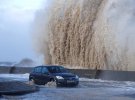 Волны высотой до 30 футов перебрасываются на берег и достают до жилых домов.
