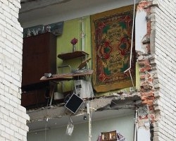 Вчера в одном из домов Луцка рухнул подъезд. Упали квартиры со второго по пятый этаж. Виновником трагедии, по подозрению жителей дома, является магазин мебели и офисной техники "Кресла Стулья Столы". Чтобы расширить помещение в магазине, там снесли несущую стену.