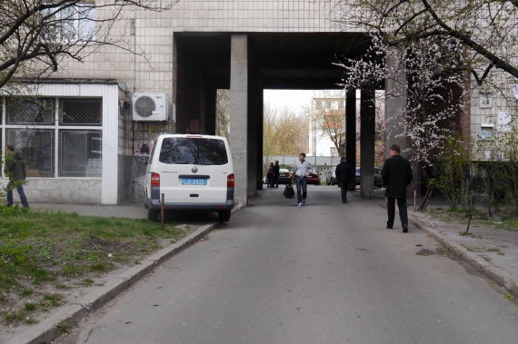 Свидетели говорят, что видели синий авто, которое выехало из двора сразу после выстрелов.