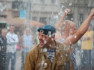 Близько двох сотень "синіх беретів" збираються 2 серпня позаду пам'ятника Шевченку біля бару "Княжий келих" у Львові. Cвяткують День Повітряно-десантних військ. Сідають за столики і замовляють випивку. За півгодини виходять на площу, обнімаються і вигукують: "ВДВ!" Кілька чоловіків сідають на бордюр.