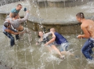 Повз фонтан проходять дві дівчини. Десантники ловлять їх і кидають у воду. Ті верещать, матюкаються, але вирватися не можуть. Врешті їх відпускають. Дівчата на собі викручують речі.