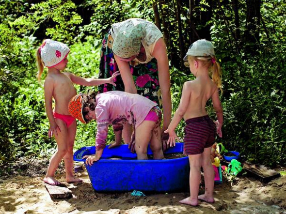 На сушилку расставляет вымытую посуду стройная 27-летняя Мария, жена Юрия. Рядом бегают дочери-близняшки Адриана и Наталья, 3,5 лет. Семья только что закончила завтракать - на столе остатки хлеба с маслом и чашки с чаем.