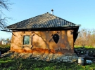 Хата-мазанка другої жительки Трахтемирова 68-річної Надії Красюк стоїть над Дніпром. До нас вибігають собаки Шарик і Тузик – гавкають, крутять хвостами й лащаться до ніг. Довго стукаю в низьке, маленьке пластикове вікно. Щоб зазирнути всередину, треба присісти.