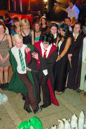 В столичный молодежный клуб "Барви" около пятидесяти киевлян пришли в костюмах героев книги о Гарри Поттере. 20 из них переоделись в главного персонажа. Вечеринку посвятили премьере последнего фильма.
