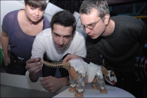 — Играемся им, пока не сядет батарея, — говорит 32-летний телеведущий Максим Нелипа. Он пришел на презентацию с женой Тамарой и 4-летним сыном Артемом. — А малого хватает на 15–20 минут, потом переключается на что-то другое. У меня в детстве таких игрушек не было. Была детская железная дорога. Вечно что-то крутил в ней, несколько комплектов испортил.