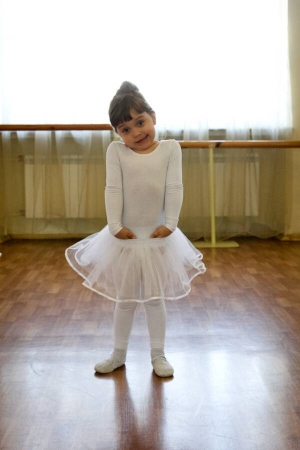 В самой младшей балетной группе в столичном Доме учителя занимаются 3-летние девочки. На занятия дважды в неделю их приводят родители. За месяц платят 500 грн. В подсобке переодеваются в белые трико и балетные пачки, украшают закрученные в гульки волосы.