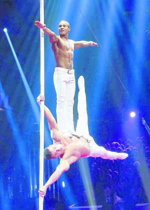 Кубинские воздушные гимнасты Леосвел и Диосмани выполняют номер, с которым собирались победить на 37-ом международном цирковом фестивале в Монте-Карло.