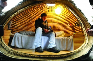 — Однокомнатный дом-яйцо внутри обработан полосками бамбука, а внешне обложен мешками с опилками. Это удерживает в помещении тепло. В комнате есть кровать и тумбочка, а также освещение. Санузла нет. Душ я принимаю во время посещения бассейна, а в туалет бегаю в соседние кафе.