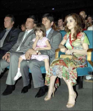 Нардеп от Партии регионов олимпийский чемпион по вольной борьбе 33-летний Эльбрус Тедеев расхаживает по фойе с младшей на 8 лет женой Фаиной и 4-летней дочкой Дианой. Та забегает в перед отца и пищит: "Хочу на руки!" Мужчина поднимает девочку, целует в щеку. Говорит, что ради концерта отменил тренировку.