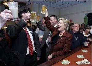 Поговаривают, обычно сенатор предпочитает красное вино или "Блу Мун" с долькой апельсина. С кружкой пива ее еще не видели. В субботу женщина размахивала им в ресторане, а толпа выкрикивала ее имя.