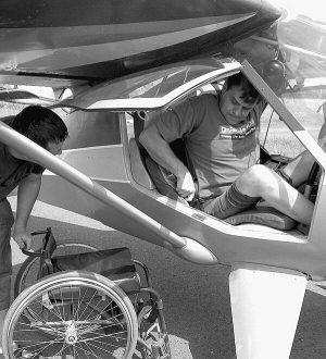 — Какая разница между веселым дельтапланеристом и грустным? У веселого мухи постоянно в зубах застревают, — шутит тернополянин 50-летний Александр Башта. Он военный летчик. 19 лет, после несчастного случая, передвигается в инвалидной коляске. Два месяца назад впервые опять сел за штурвал самолета. Испытывал модель, которую киевские авиаконструкторы разработали для летчика-инвалида из Австралии.